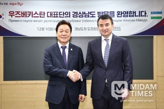 미담타임스 김교환 기자 | 경상남도는 10일 오전 도청에서 진행된 우즈베키스탄 고위급 대표단 접견에서 잠시드 압두하키모비치 호자예프(Jamshid Abduxakimovich Khodjaev) 우즈벡 경제부총리의 공동 산업단지 조성 제안에 ‘실무 협의 추진’으로 화답했다.