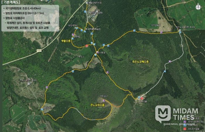 이번 사업은 궷물오름-족은노꼬메오름-큰노꼬메오름을 잇는 9.43km 구간을 국가생태탐방로로 정비해 2026년까지 마무리할 계획이다.