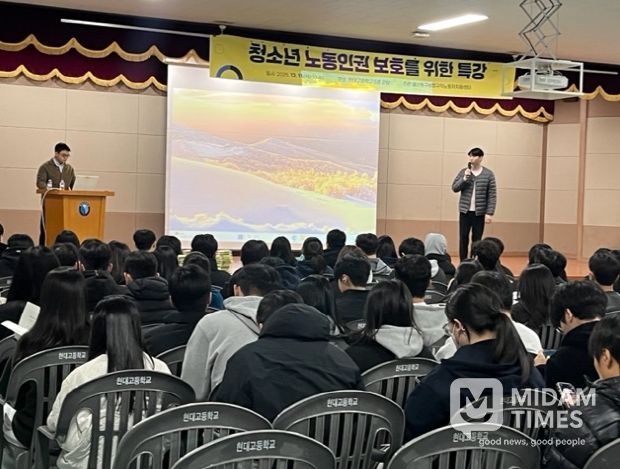 미담타임스 김준완 기자 | 울산 동구는 12월 11일 오전 10시 40분 현대고등학교 강당에서 200명의 재학생이 참여한 가운데 ‘고3 수험생을 위한 노동인권 및 노동법률 특강’을 개최했다.