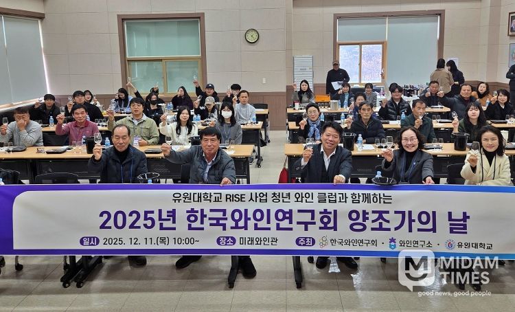 미담타임스 김준완 기자 | 충북농업기술원과 유원대학교 충북 RISE 사업단(단장 백기영)은 지난 11일 와인연구소에서 한국와인연구회원과 유원대 청년 와인 클럽 등 75명이 참석한 가운데, 숙성 와인과 청수‧캠벨얼리 와인 마리아주 세미나를 공동 개최했다고 12일 밝혔다.