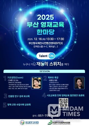 미담타임스 김교환 기자 | 부산광역시교육청영재교육진흥원(원장 진병화)은 오는 16일 부산항국제전시컨벤션센터(BPEX)에서 교육공동체를 대상으로 ‘2025 부산 영재교육 한마당’을 개최한다.