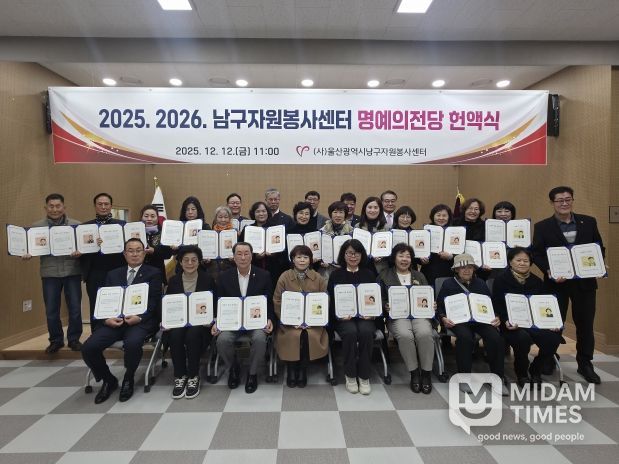 미담타임스 김준완 기자 | 남구자원봉사센터(이사장 최영수)는 12일 남구자원봉사센터 대강당에서 명예의 전당 헌액식을 개최했다.