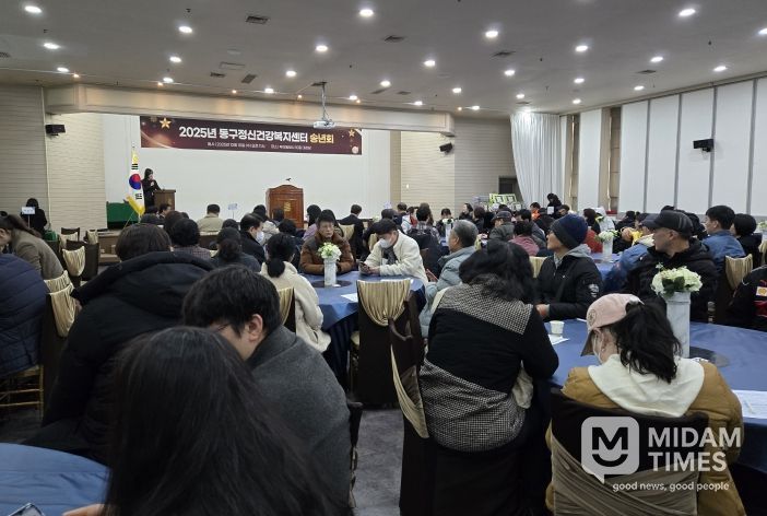 미담타임스 김교환 기자 | 부산 동구정신건강복지센터에서는 지난 10일, 부산일보사 10층 대강당에서 센터 회원 및 가족, 유관기관 관계자 등 200여 명이 참석한 가운데 ‘2025년 동구정신건강복지센터 송년회’를 성황리에 개최했다.