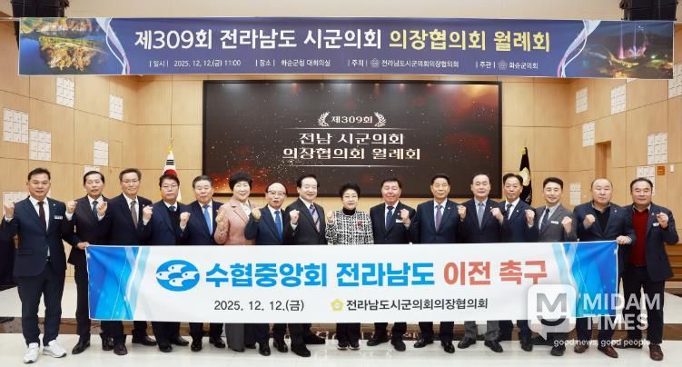 미담타임스 정인화 기자 | 여수시의회에 따르면, 백인숙 의장은 12일 화순군의회에서 열린 제309회 전라남도시군의회의장협의회 월례회의에 참석해 전남 수산정책의 혁신과 국가 균형발전을 위해 '수협중앙회 전라남도 이전 촉구 건의안'과 '수산 정책 혁신을 위한 수산청 외청 전라남도 신설 촉구 건의안'을 제안했으며, 두 안건 모두 협의회에서 채택됐다.