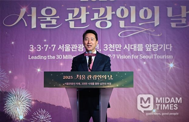 미담타임스 정주환 기자 | 오세훈 서울시장은 12일 16시 20분, 세빛섬 플로팅 아일랜드에서 개최된 ‘2025 서울관광인의 날’ 행사에 참석해 올 한 해 서울 관광 발전에 기여한 숨은 일꾼에게 시상했다.