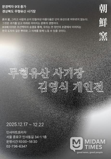 미담타임스 김준완 기자 | 경상북도 무형유산 김영식 사기장이 오는 17일부터 22일까지 서울 인사동 인사아트프라자에서 개인전을 연다.