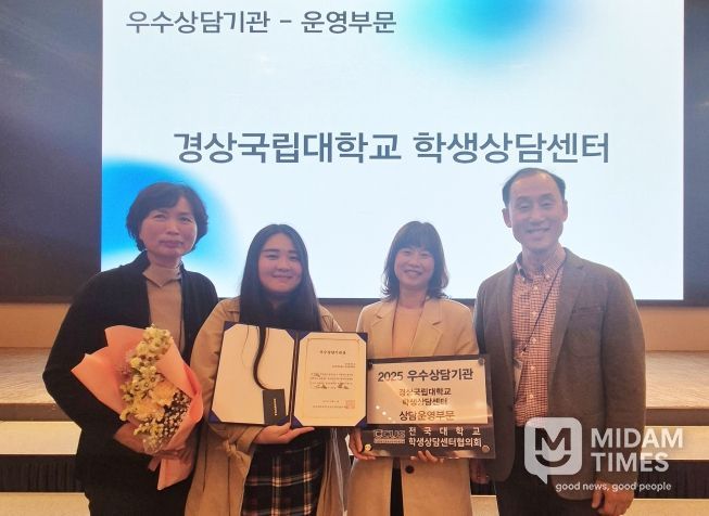 미담타임스 김교환 기자 | 경상국립대학교(GNU·총장 권진회) 학생상담센터(센터장 김장회 교육학과 교수)가 전국대학교학생상담센터협의회(전상협)가 주관한 ‘2025년 우수상담기관’에 선정됐다.