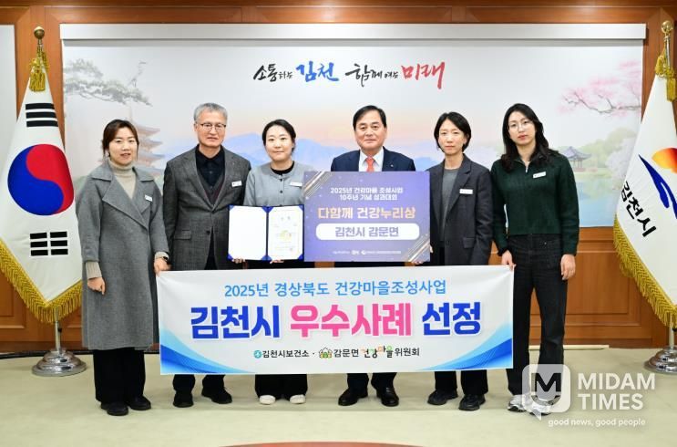 미담타임스 김준완 기자 | 김천시 보건소는 지난 12월 9일 경주 라한 셀렉트 호텔에서 열린 ‘2025년 경상북도 건강마을 조성사업 성과대회’에서 건강마을 조성사업 우수사례에 선정됐다.