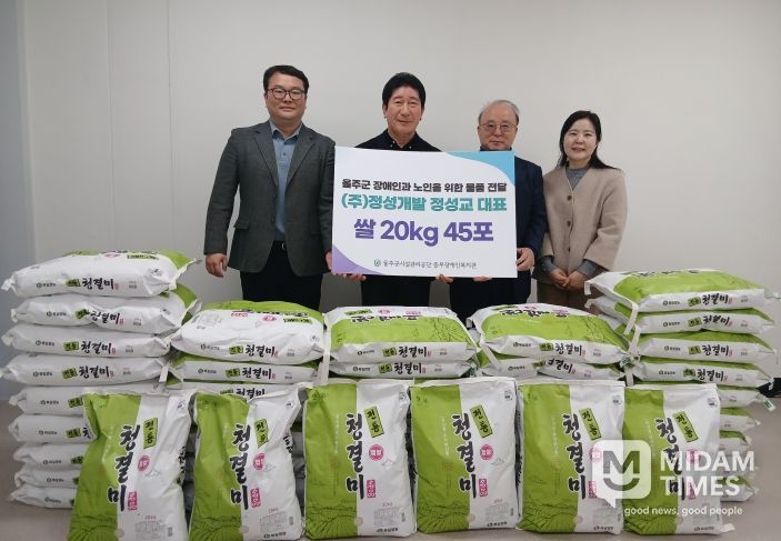 미담타임스 김준완 기자 | 울주군시설관리공단(이사장 최인식) 중부장애인복지관은 12월 16일, ㈜정성개발(대표 정성교)로부터 백미 20kg 45포를 후원받아 전달식을 진행했다.