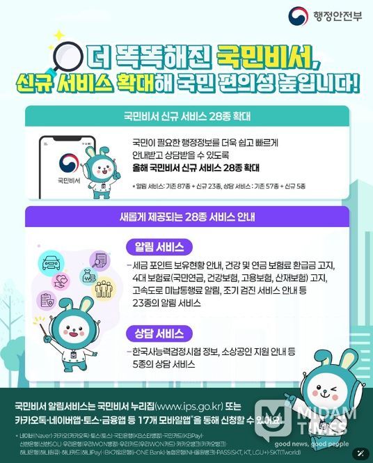 미담타임스 조혜리 기자 | 더 똑똑해진 국민비서, 신규 서비스 확대해 국민 편의성 높입니다!