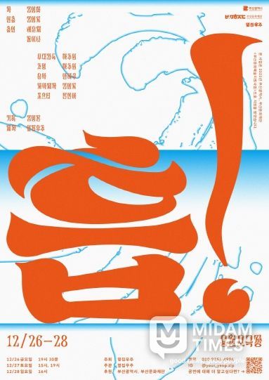 미담타임스 김교환 기자 | 부산시와 부산문화재단의 부산문화예술지원사업으로 제작된 연극 ‘흡!’이 오는 12월 26일부터 28일까지 부산 용천소극장에서 공연된다. 이번 작품은 북구 청년 복합문화 창작공간 SPACE 119 입주 작가인 김영화 작가가 작·연출을 맡은 창작 연극이다.