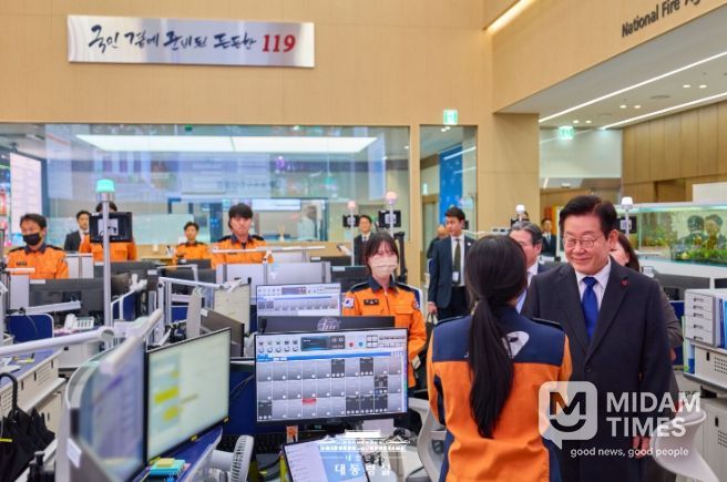 이 대통령은 먼저 소방청 119 종합상황실을 방문해 긴급 신고 접수와 출동 지휘 등 대응 현장을 직접 살폈다. 이어 중앙119 구급 상황 관리센터와 119 항공 운항 관제실에서 국민의 생명과 안전을 지키는 소방대원들의 노고를 치하했다.