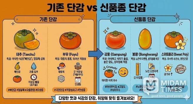 반면 이번에 보급된 품종은 농촌진흥청이 개발한 고당도(16°Bx 이상)의 완전단감으로, 맛과 품질 면에서 일본 품종을 대체할 수 있을 것으로 기대되고 있다.