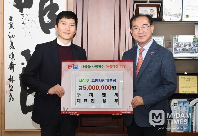 사상구는 지난 12월 16일, ㈜지엔시 전용후 대표가 고향사랑기부금 500만 원을 기탁했다고 밝혔다.