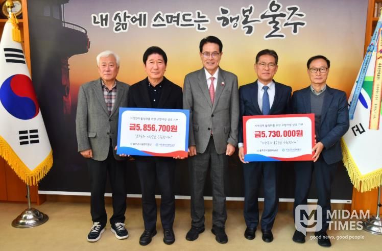 미담타임스 김준완 기자 | 울주군 시설관리공단과 기장군 시설관리공단이 17일 울주군과 기장군에 임직원들이 자발적 참여로 모금한 고향사랑기부금을 교차 기부했다.