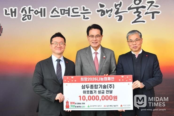 이순걸 군수는 “평소 지역사회를 위해 꾸준히 사회공헌 활동에 동참해주신 삼두종합기술(주) 최영수 대표께 깊이 감사드린다”며 “울주군도 복지 사각지대 해소를 위해 더욱 힘쓰겠다”고 밝혔다.