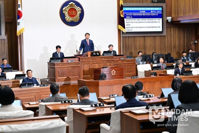 미담타임스 김준완 기자 | 울산광역시의회는 17일 오전 10시 본회의장에서 김두겸 시장과 천창수 교육감을 비롯한 관계 공무원들이 참석한 가운데 제260회 제2차 정례회 제4차 본회의를 개의하고, 2025년도 행정사무감사 결과보고서 채택 등 각종 안건을 처리한 후 45일간의 정례회 일정을 모두 마무리했다.