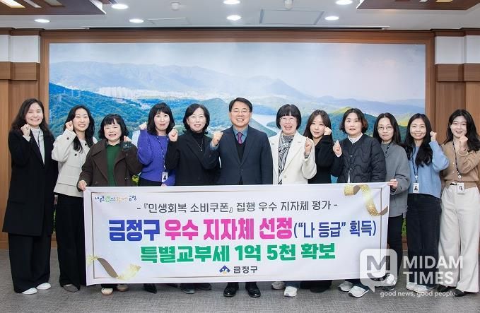 미담타임스 김교환 기자 | 부산시 금정구는 지난 10일 행정안전부가 실시한 『민생회복 소비쿠폰』 집행 우수지자체 평가에서 “나 등급”을 획득하며 우수기관으로 선정됐다고 밝혔다.