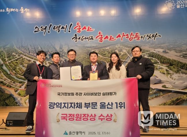 미담타임스 김준완 기자 | 울산시는 국가정보원이 실시한 ‘2025년 사이버보안 정기포상’에서 기관·단체 분야 국정원장상을 수상했다고 밝혔다.