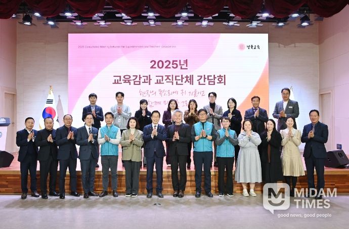 미담타임스 김준완 기자 | 경북교육청은 18일 본청 웅비관에서 ‘2025년 교육감과 교직단체와의 간담회’를 열고, 학교 현장의 생생한 목소리를 듣는 소통의 시간을 가졌다고 밝혔다.