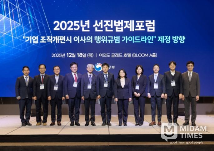 미담타임스 김교환 기자 | 법무부는 12월 18일 09:30 서울 여의도 글래드 호텔에서 “기업 조직개편시 이사의 행위규범 가이드라인 제정 방향”이라는 주제로 '2025 선진법제포럼'을 개최했다.