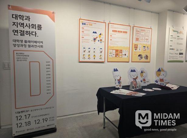 미담타임스 김준완 기자 | 울산 동구 도시재생지원센터는 지난 12월 17일 오후 5시 오프닝을 시작으로, 12월 19일(금)까지 나눔센터(남목18길 24)에서 대학생 플레이메이커 양성과정 결과 전시회를 진행했다.