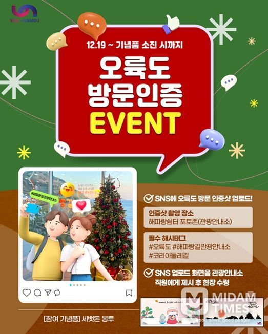 이번 연말연시 이벤트를 통해 오륙도를 찾는 국내외 관광객들이 한 해를 돌아보고 새해를 맞이하는 뜻깊은 시간을 보내며, 여행의 즐거움과 따뜻한 추억을 함께 나눌 수 있을 것으로 기대된다.