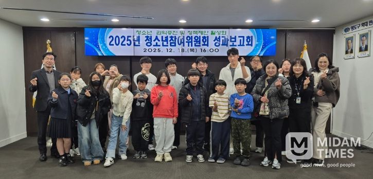 미담타임스 김교환 기자 | 부산 영도구는 지난 12월 18일 영도구청에서 청소년과 보호자 20여 명이 참석한 가운데 ‘제13기 영도구 청소년참여위원회 성과보고회’를 개최하고, 위원회의 한 해 활동을 공식적으로 마무리했다.