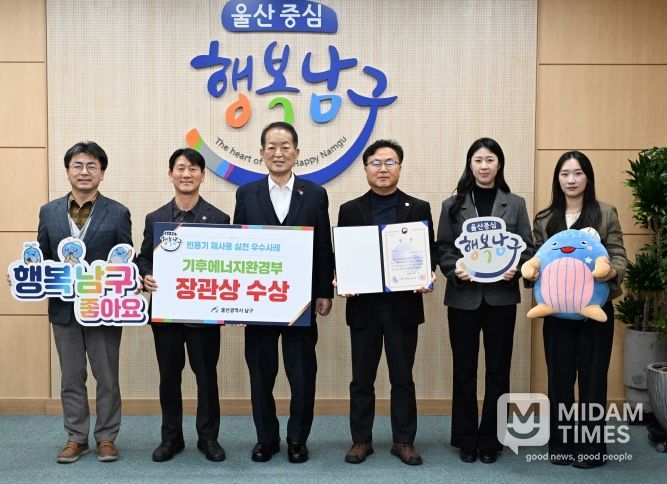 미담타임스 김준완 기자 | 울산 남구는 기후에너지환경부가 주최하고 자원순환보증금관리센터(이사장 박용규)가 주관한 '2025년 빈용기 재사용 실천 우수사례' 공모에서 ‘최우수상(기후에너지환경부 장관상)’을 수상했다고 19일 밝혔다.