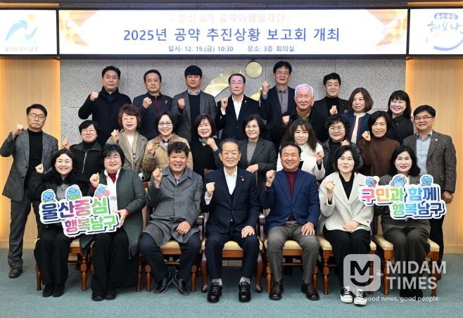 미담타임스 김준완 기자 | 울산 남구는 19일 ‘민선 8기 공약이행평가단 2025 공약 추진상황 보고회’를 열고 민선 8기 공약사업의 현주소 점검과 함께 향후 계획을 확인했다.