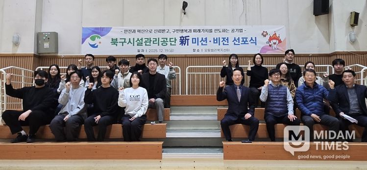 미담타임스 김준완 기자 | 울산북구시설관리공단(이사장 임정식)은 19일 공단의 새로운 미션·비전 선포식을 개최하고, 구민 행복 증진과 지속가능한 지역발전을 위한 공공서비스 혁신 실천 의지를 다졌다고 밝혔다.