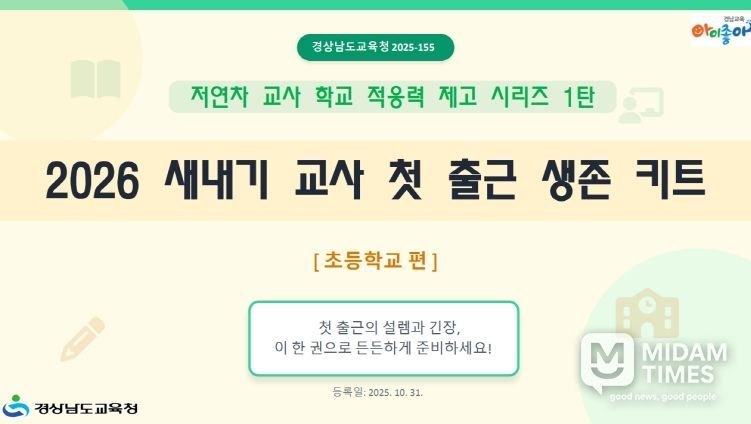 미담타임스 박민정 기자 | 경상남도교육청은 22일부터 도내 초등학교 신규 교사의 안정적인 학교 정착을 지원하기 위한 『2026 새내기 교사 첫 출근 생존 키트』를 도내 전 초등학교에 배포한다.