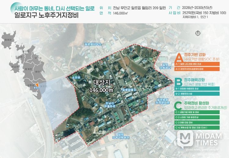 미담타임스 김준완 기자 | 전남 무안군은 18일 국토교통부 제38차 도시재생특별위원회 심의를 통해 2025년 도시재생 노후주거지정비 지원사업 공모에 선정되어 사업비 251억 원을 확보했다.