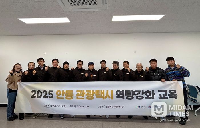 미담타임스 김준완 기자 | (사)안동시관광협의회는 지난 18일 안동관광커뮤니티센터에서 ‘2025 안동관광택시 종사자 역량강화 교육’ 수료식을 성황리에 마쳤다고 밝혔다.