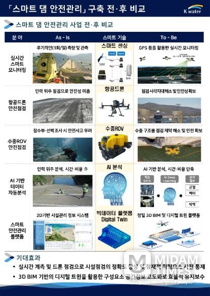미담타임스 김준완 기자 | 기후에너지환경부와 한국수자원공사는 전국 37개 국가 댐을 대상으로 2020년부터 추진한 ‘스마트 댐 안전관리 시스템’ 구축 사업이 12월 22일을 기준으로 완료된다고 밝혔다.