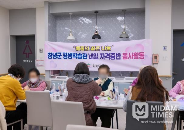 미담타임스 김교환 기자 | 창녕군은 지난 13일과 20일 양일간 창녕읍 소재 주간보호센터에서 어르신 30여 명을 대상으로 손·발톱 정리 봉사활동을 진행했다고 밝혔다. 이번 봉사에는 평생학습관 네일 자격증반 수강생 9명과 강사 1명 등 총 10명이 참여했다.