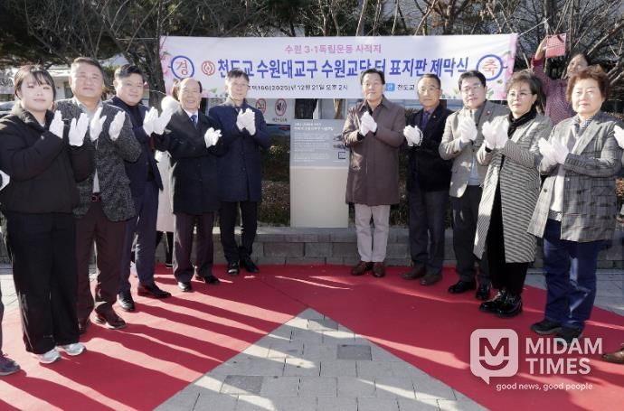 미담타임스 정주환 기자 | 이재준 수원특례시장이 21일 천도교 수원대교구 독립운동 안내표지판 제막식에 참석했다.