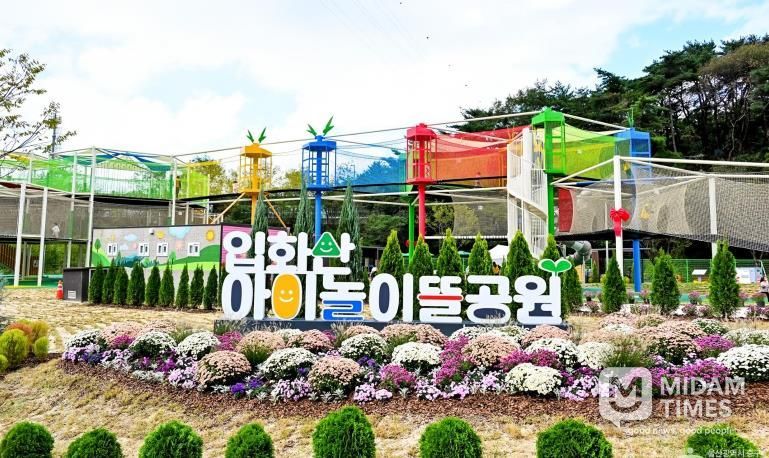 입화산 아이놀이뜰 공원은 면적 760㎡, 높이 10m에 달하는 울산 최대 규모의 그물 모험 놀이시설을 갖추고 있다.