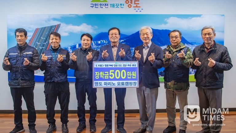 미담타임스 김교환 기자 | 영도 마리노 오토캠핑장(기간제근로자 일동)은 지난 12월 19일 영도구청을 방문하여 우수한 지역인재 양성을 위해 (재)행복영도장학회에 500만 원을 기탁했다.