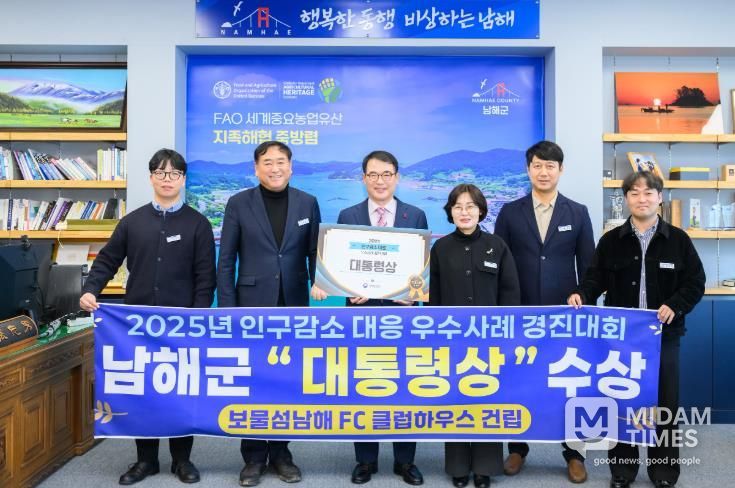 미담타임스 김교환 기자 | 남해군이 행정안전부가 주관한 ‘2025년 지자체 인구감소 대응 우수사례 경진대회’에서 최고 우수 기초지자체로 선정돼 대통령상을 수상하는 영예를 안았다.