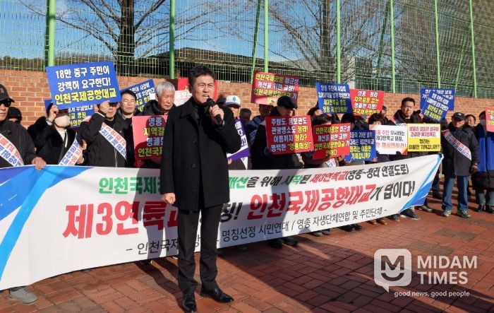 이와 관련해 인천국제공항대교 명칭 선정 시민연대 100여 명은 이날 국토지리정보원에서 집회를 열고, ‘인천국제공항대교’ 명칭 제정을 한목소리로 촉구했다.