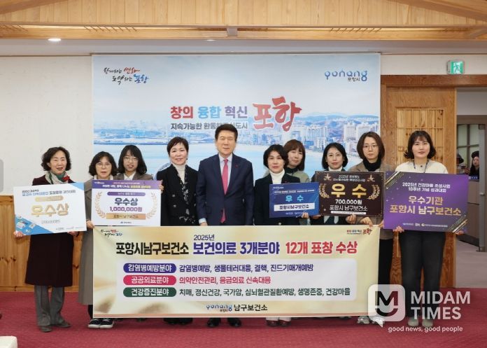 미담타임스 김준완 기자 | 포항시 남구보건소가 2025년 한 해 동안 보건의료 전 분야에서 탁월한 성과를 거두며, 중앙부처와 경상북도 평가 등에서 총 3개 분야 12개의 상을 휩쓸었다고 23일 밝혔다.