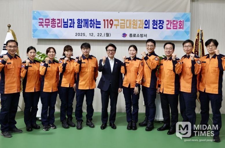 미담타임스 김교환 기자 | 김민석 국무총리는 12월 22일 서울 종로소방서를 방문하여 응급환자이송체계 최일선에 있는 119구급대원의 의견을 듣는 자리를 가졌다.