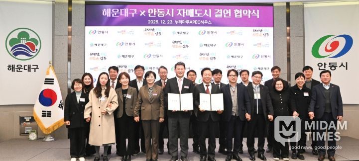 미담타임스 김교환 기자 | 해운대구는 12월 23일, 부산 누리마루 APEC하우스에서 경상북도 안동시(시장 권기창)와 자매결연 협약을 체결했다.