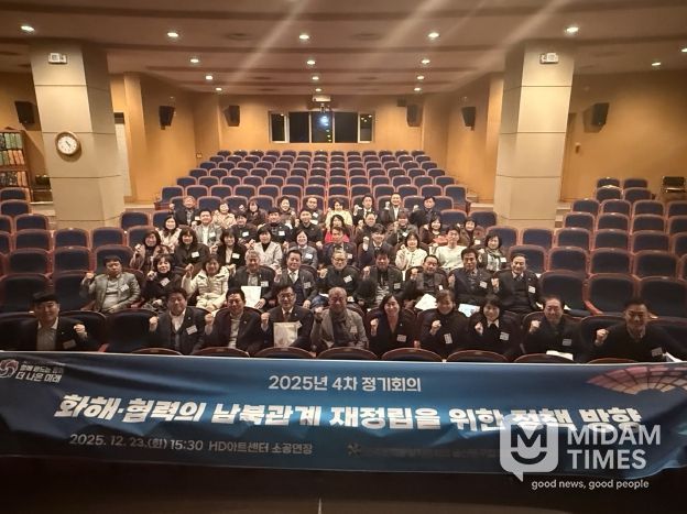 미담타임스 김준완 기자 | 민주평화통일자문회의 울산동구협의회(회장 장예식)는 12월 23일 오후 3시 30분 HD아트센터 소공연장에서 자문위원 등 50여 명이 참석한 가운데 ‘화해·협력의 남북 관계 재정립을 위한 정책 방향’을 주제로 2025년 4차 정기 회의를 개최했다.