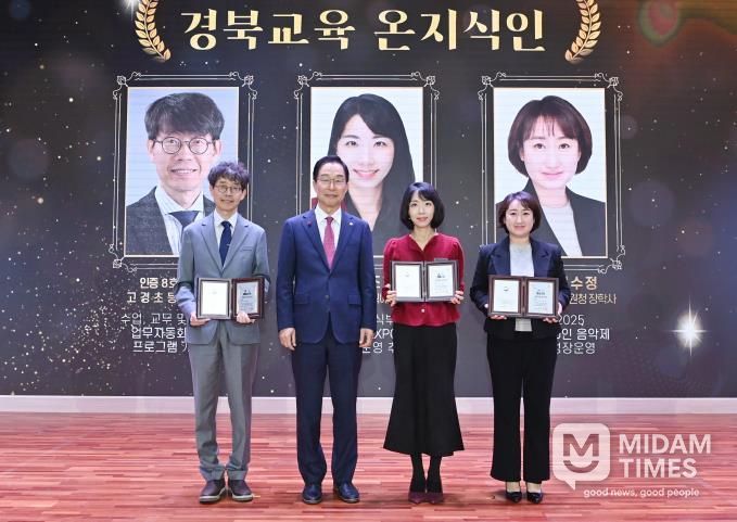 미담타임스 김준완 기자 | 경북교육청은 ‘경북교육 온지식인’ 교육감 인증 수여식을 개최하고, 창의적인 업무혁신과 정책․교육 현장 개선에 이바지한 3명을 선정해 교육감 인증을 수여했다고 24일 밝혔다.