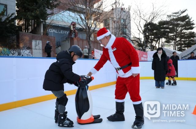 미담타임스 정주환 기자 | 크리스마스 이브인 12월 24일, ‘윈터페스타 엄빠랑 아이스링크’에 산타로 깜짝 변신한 박강수 마포구청장이 등장해 아이들에게 특별한 추억을 선사했다.