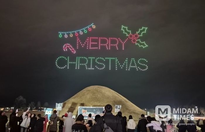 미담타임스 김준완 기자 | 경주시는 지난 24일 황남동 고분군 일원에서 ‘브레드이발소와 함께하는 크리스마스 드론 아트쇼’를 개최해 시민과 관광객에게 특별한 연말 추억을 선사했다.