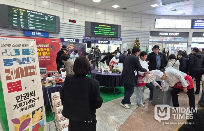 미담타임스 김준완 기자 | 포항시는 지역 특산물을 활용한 레시피 공모전을 통해 최종 5팀을 선정하고 지난 24일 포항역에서 시민과 방문객을 대상으로 무료 시식 행사와 함께 지역 농산물 소비 촉진 캠페인을 진행했다.