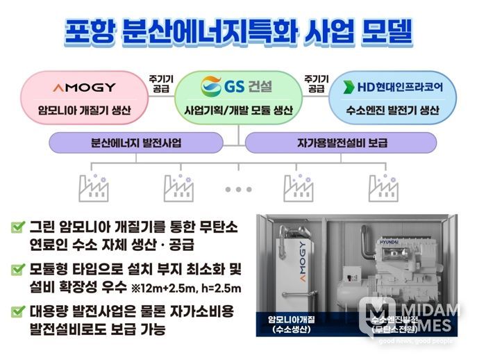 포항시가 제시한 모델은 ‘그린 암모니아 기반 무탄소 분산에너지 실증사업’이다. 영일만 일반산업단지를 중심으로 그린 암모니아 기반 수소엔진 발전 설비를 구축하고, 이차전지 관련 기업에 40MW급 무탄소 전력을 공급하는 것이 핵심이다. 이를 통해 분산 전원의 상용화와 친환경 산업 인프라 조성을 동시에 추진한다는 전략이다.